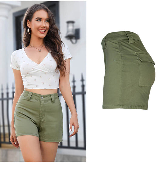 Sold outHigh Waist Denim Shorts-Olive Green